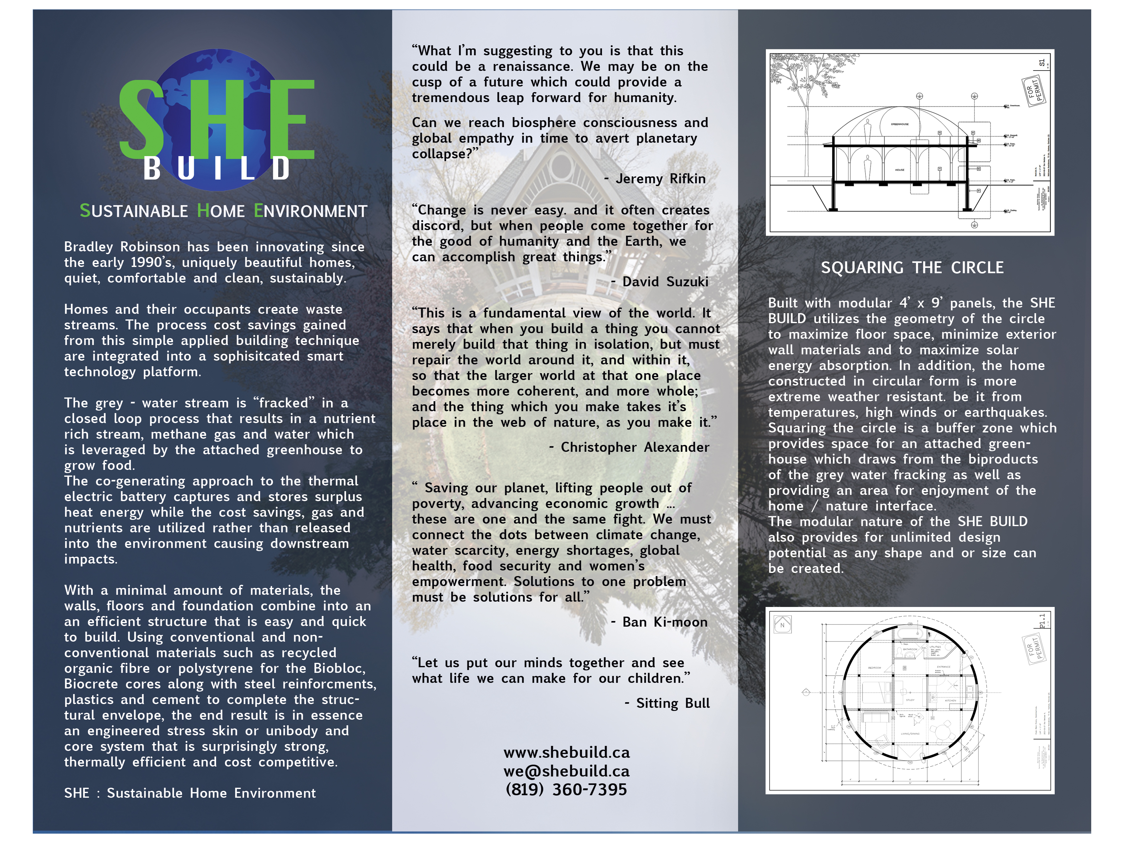 This entry was posted in Courage & Collaboration and tagged Bioblock, Bradley Robinson, climate change, closed loop, integrated building, modular, Quebec, SHE, Sustainable Home Environment, unibody, Wakefield.