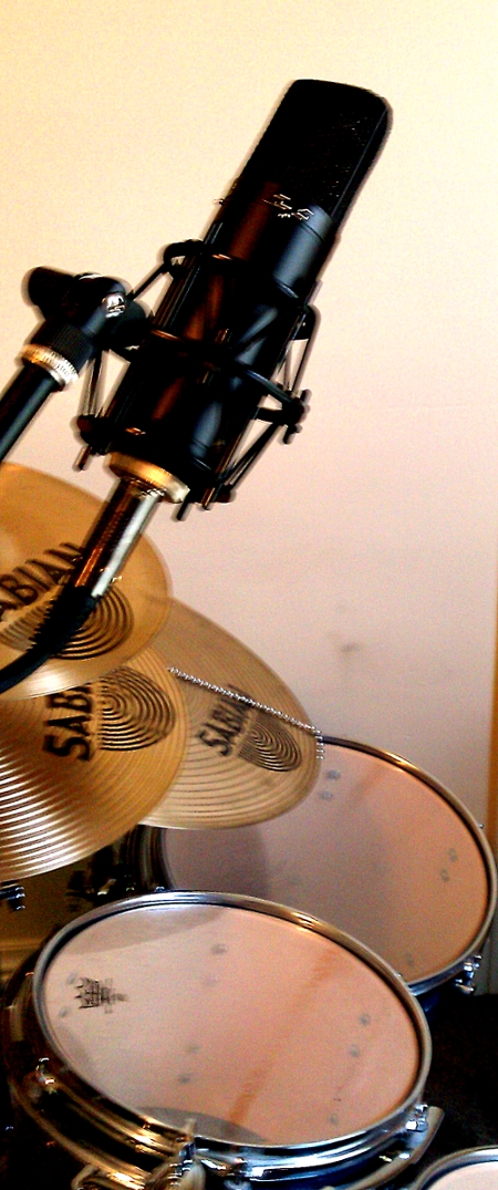 at the bell of the top cymbal (clean sound with highs). Microphone should be a min of 3 inches from cymbal to minimize change in phase interaction between the cymbal and the mic capsule