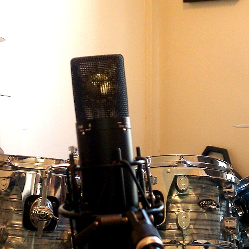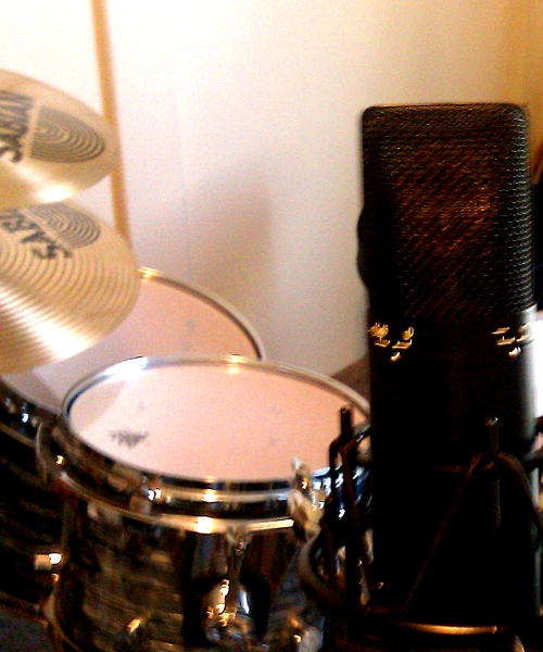 to hear tone (head ringing) place mike near rim. When the stick hits near the rim the sound has more tone