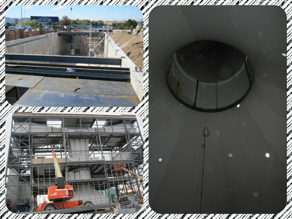 Right: Looking up at the base of the wind tunnel from the basement floor